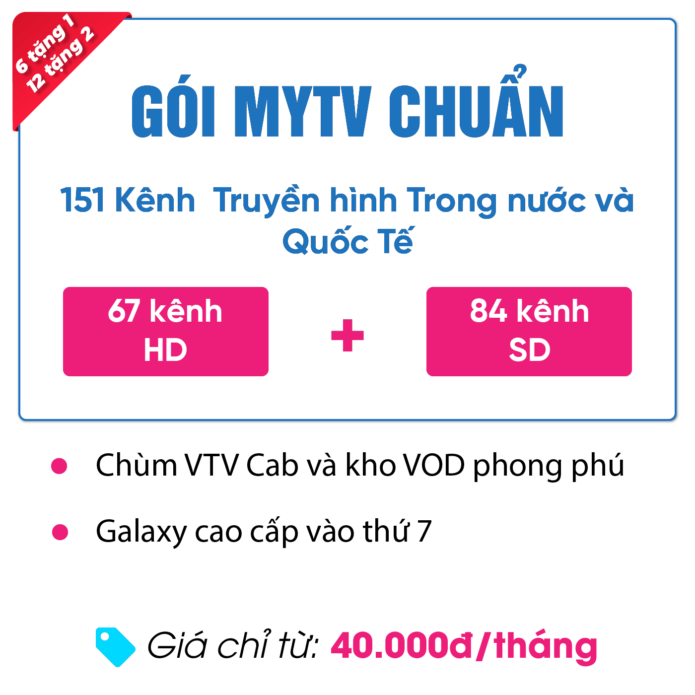 - Chi tiết gói CHUẨN: 151 kênh 84 SD & 67 HD (có VTVcab) + Kho VOD. Galaxy cao cấp vào thứ 7 hàng tuần.