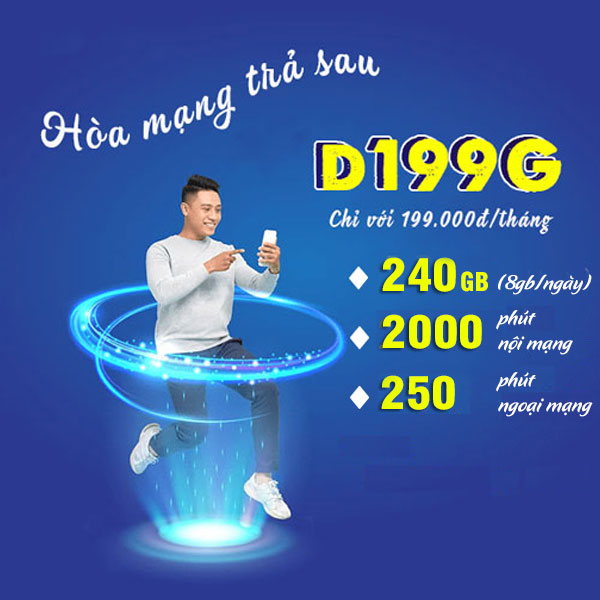Vinaphone trả sau D199G là gói Vinaphone giá rẻ tích hợp Thoại nội mạng, ngoài mạng và data. Đỉnh D199G rất thích hợp cho khách hàng học sinh, sinh viên và người dùng di động cần nhiều data.